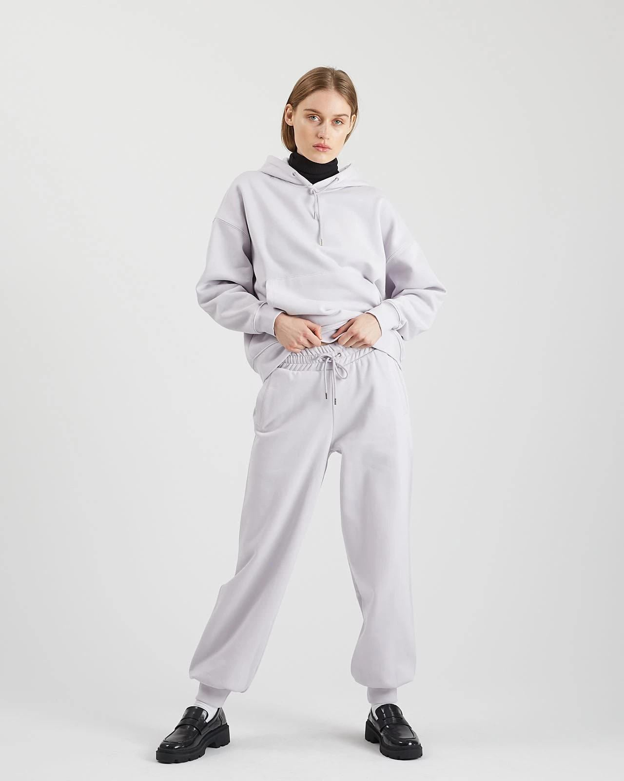 They have a mid-rise waist with elastic band and adjustable drawstrings, ensuring a perfect fit. The sweat pants have a regular length, are fitted to the ankles and features two side pockets at the front.