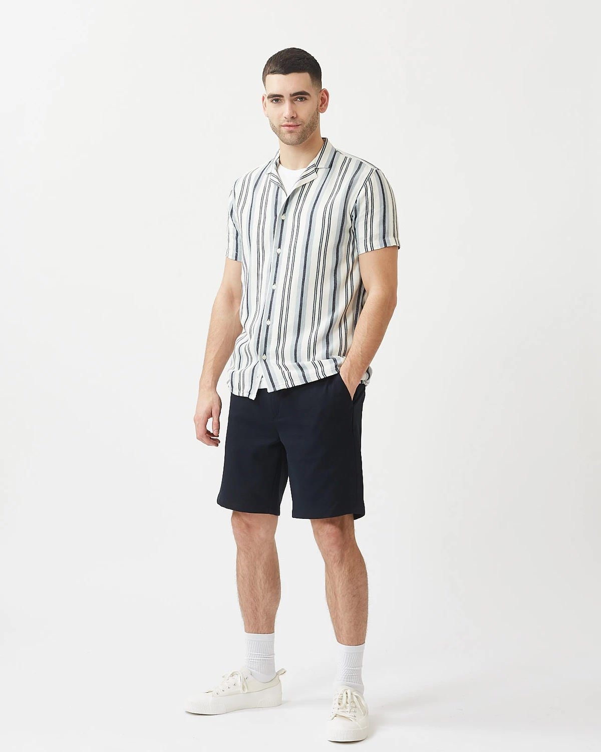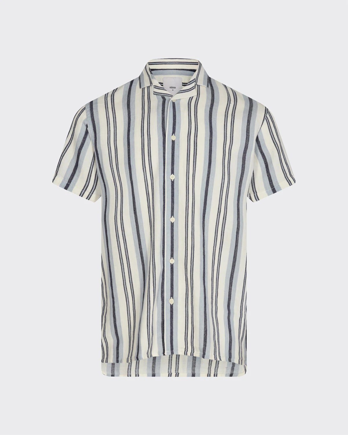 It is crafted from organic cotton and linen, for a sustainable choice. The shirt has a regular fit and features front buttons and collar.