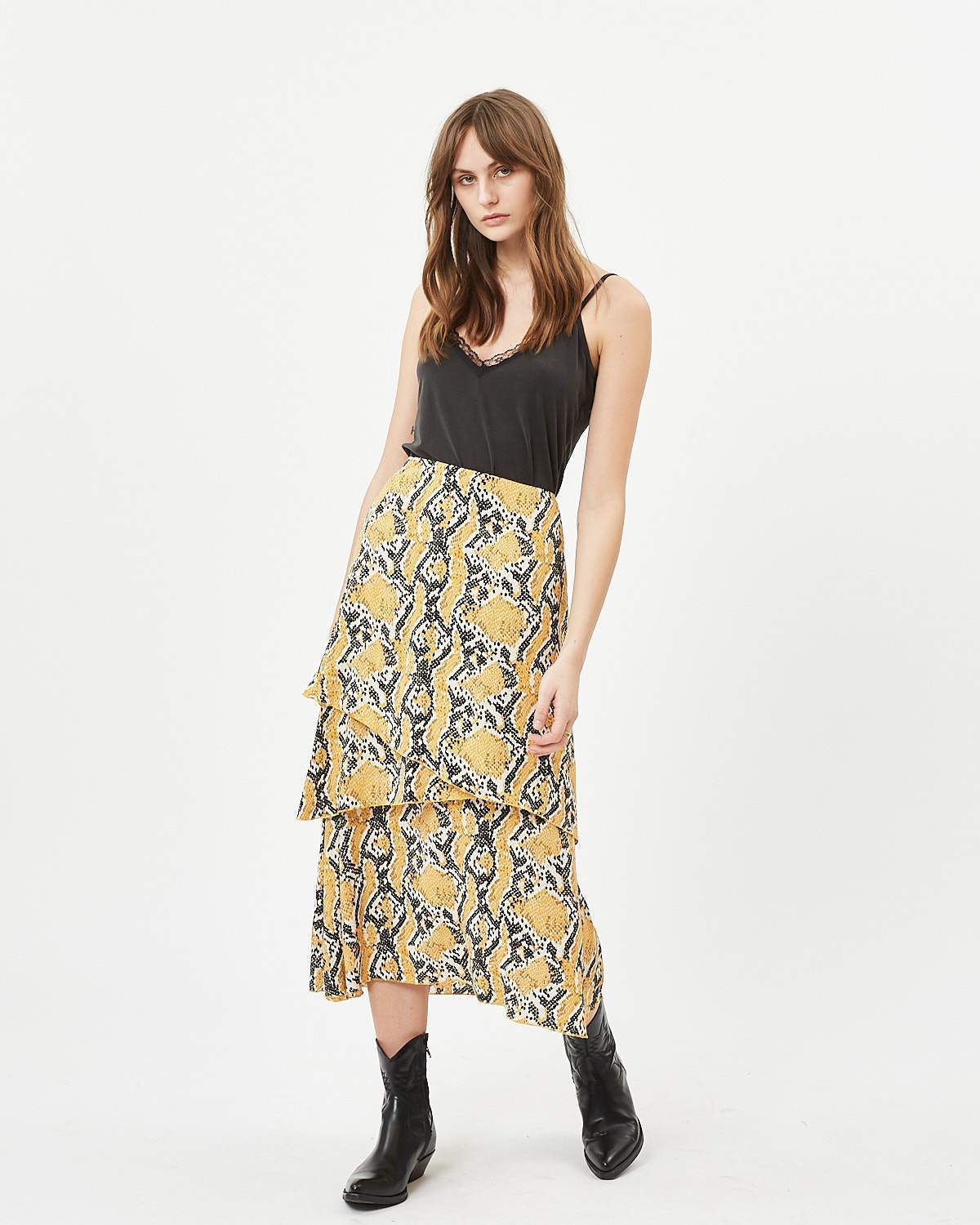 Fusine is a layered wavy skirt that pairs beautifully with a simple top.