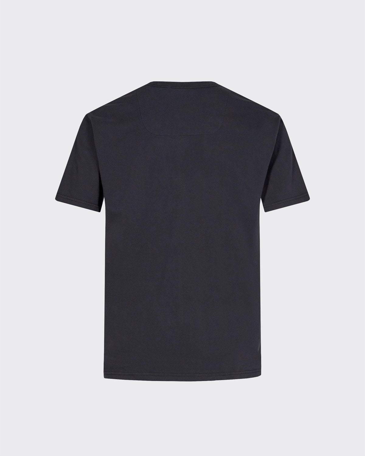 The t-shirt is loose fit and features short sleeves, round neck and a single chest pocket.