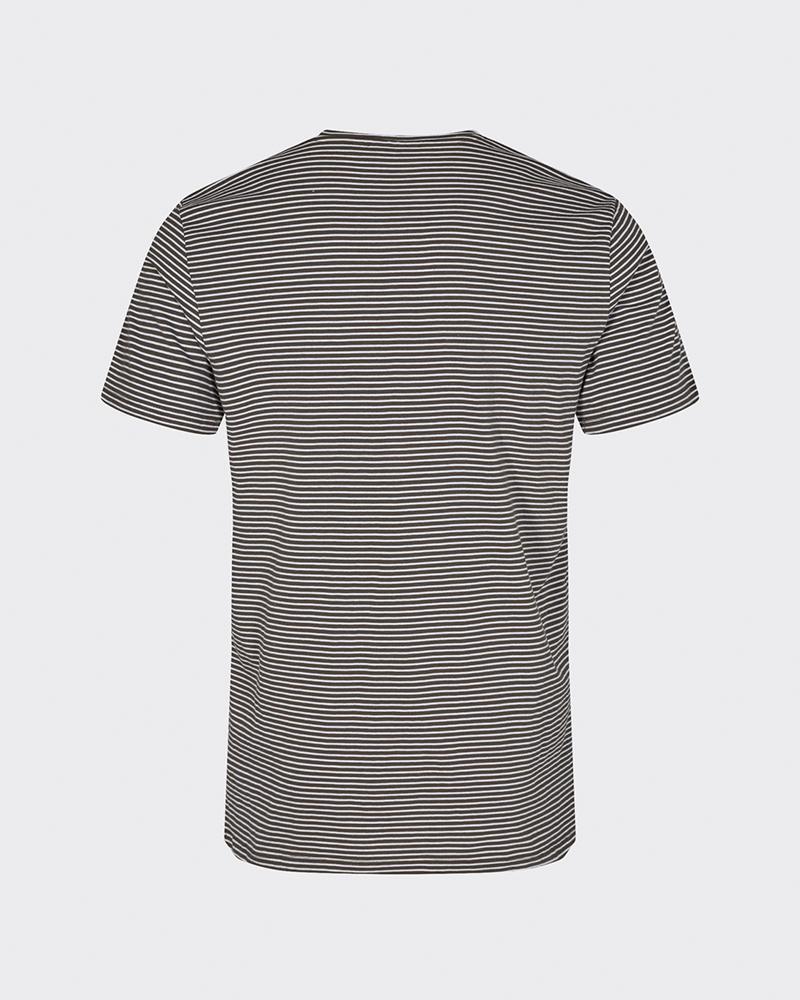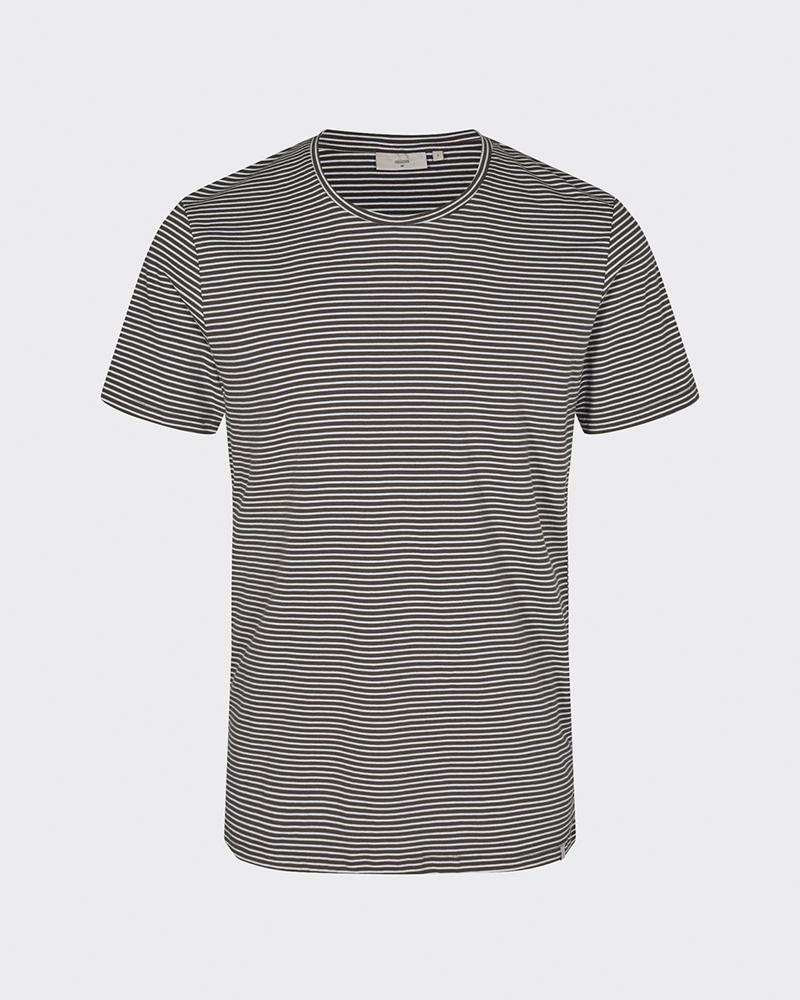 It has a soft surface feel and a lightweight material. The t-shirt has a regular straight fit and features short sleeves, crew neck and a two-toned striped pattern.