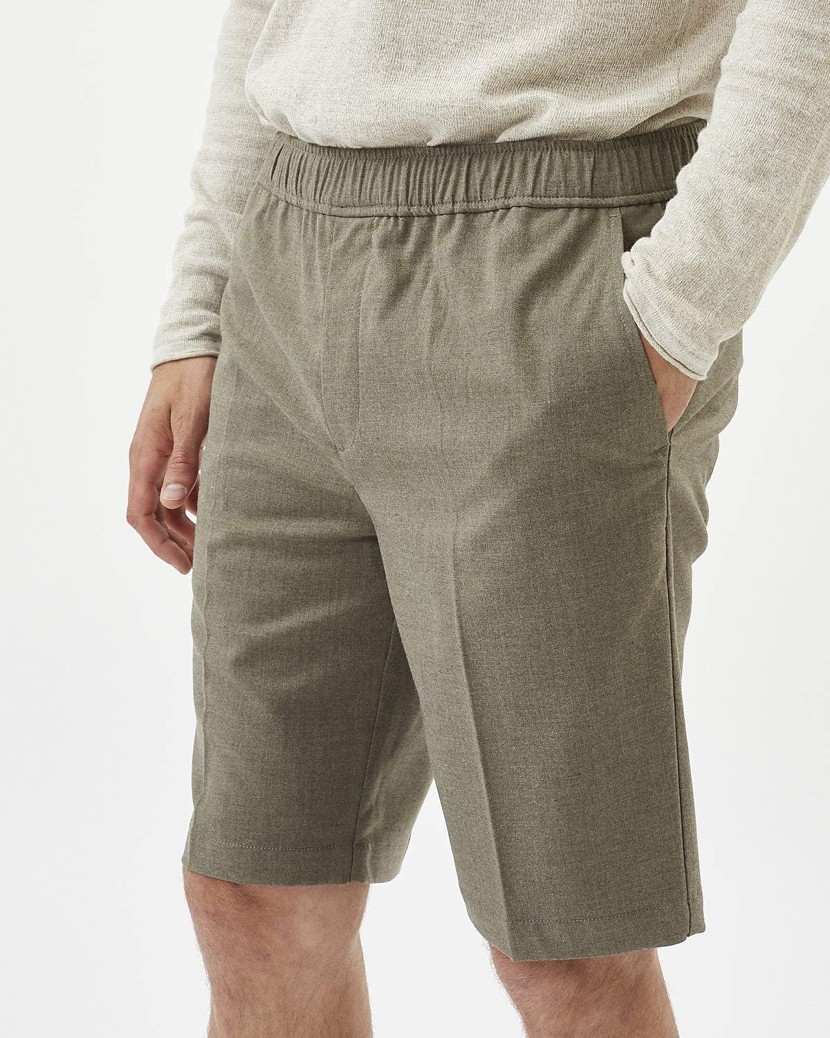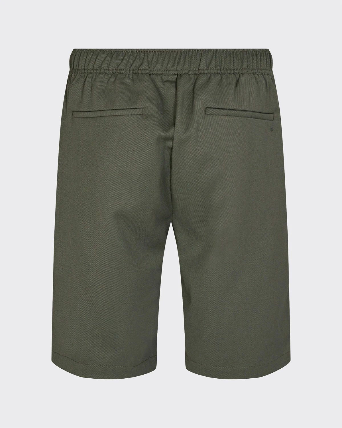 The shorts contains 30 pct. Wool for a warmer quality. They feature elastic at the waist, press creases, pockets along the side seams and welt pockets on the back.