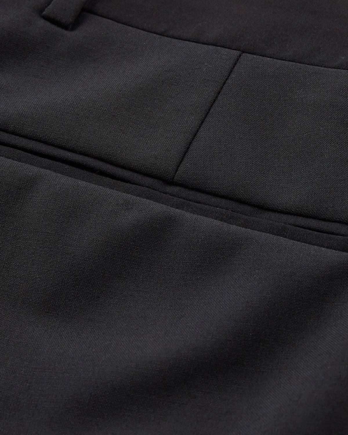 They have a stylish pressed crease and four pockets. Use them with the Gilbert blazer for a complete look.