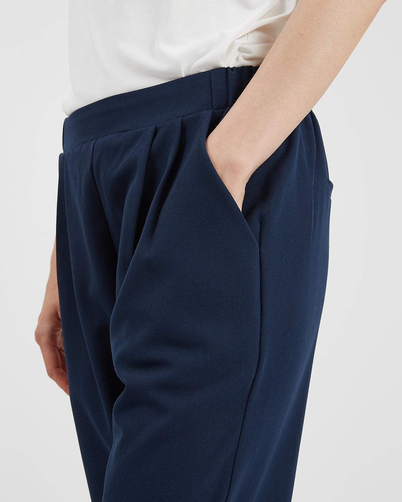 It is designed with a regular fit, slightly tapered legs and ends at above ankle-length.