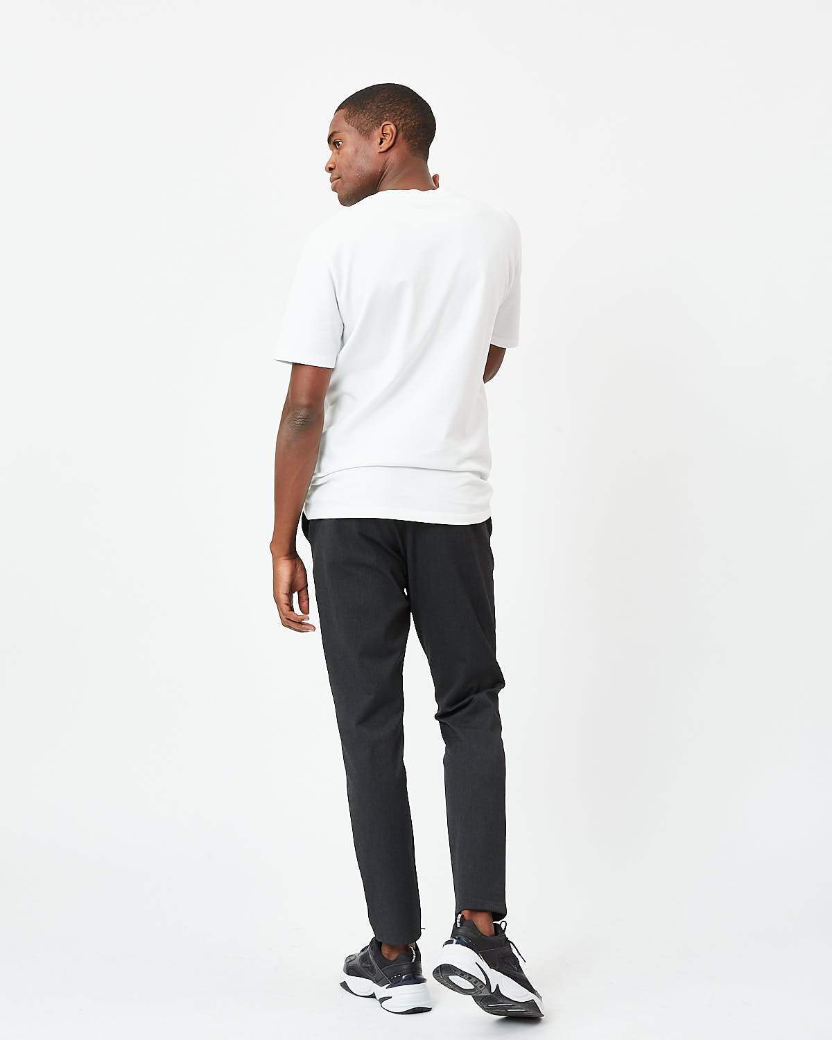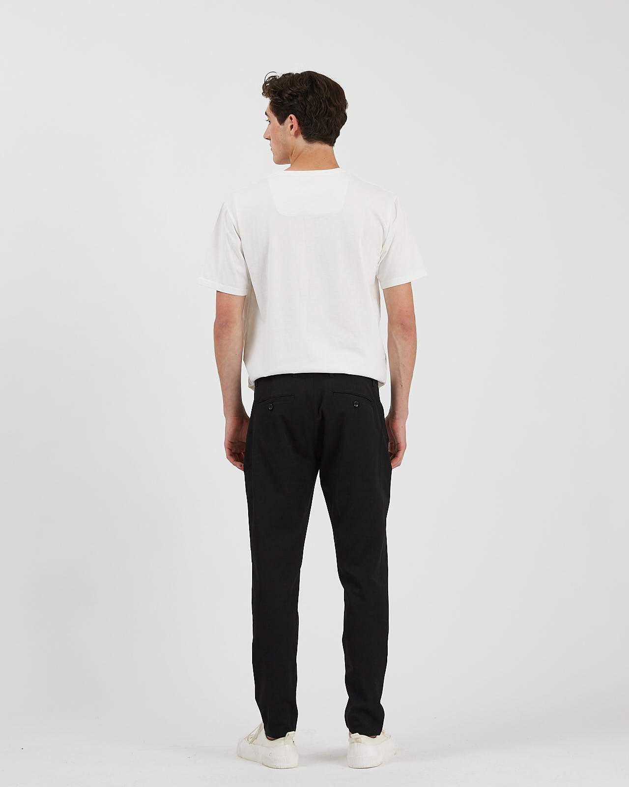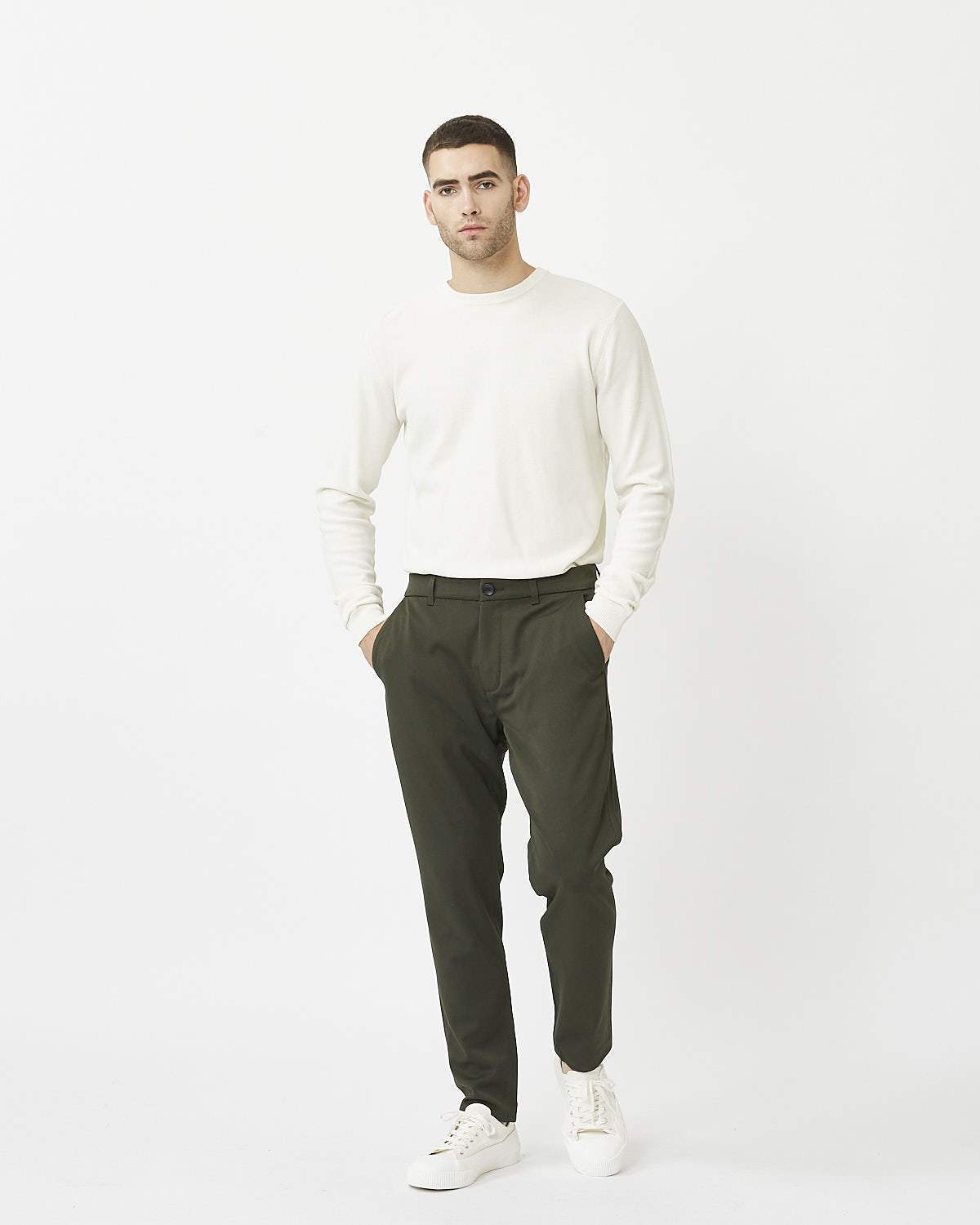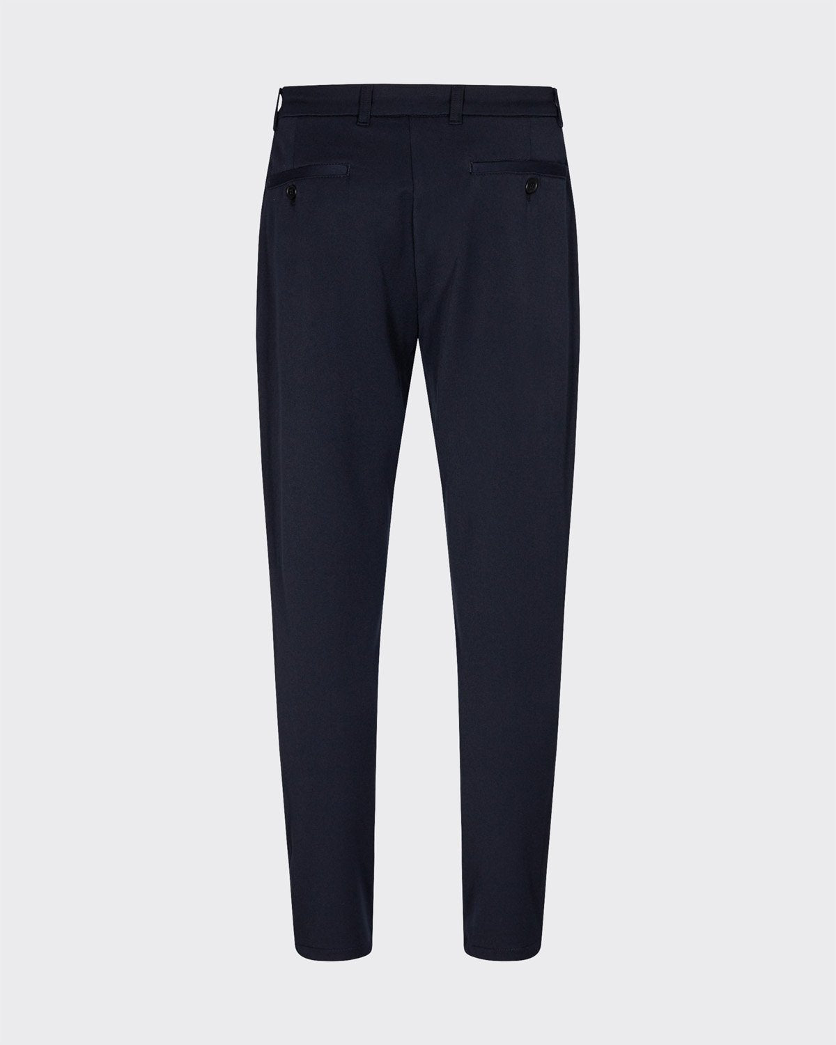 It is made from a flexible polyester, viscose and eleastane blend, for optimal comfort and movement. The pant has a regular fit and is constructed with tapered legs, slanted pockets along the sides and two welt pockets on the back.