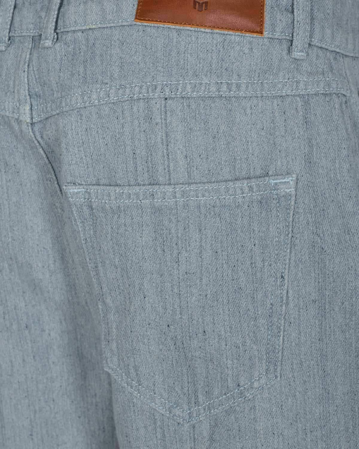 They have a regular fit and features five pockets, silver hardware, belt loops and zipper closure with button fastening.