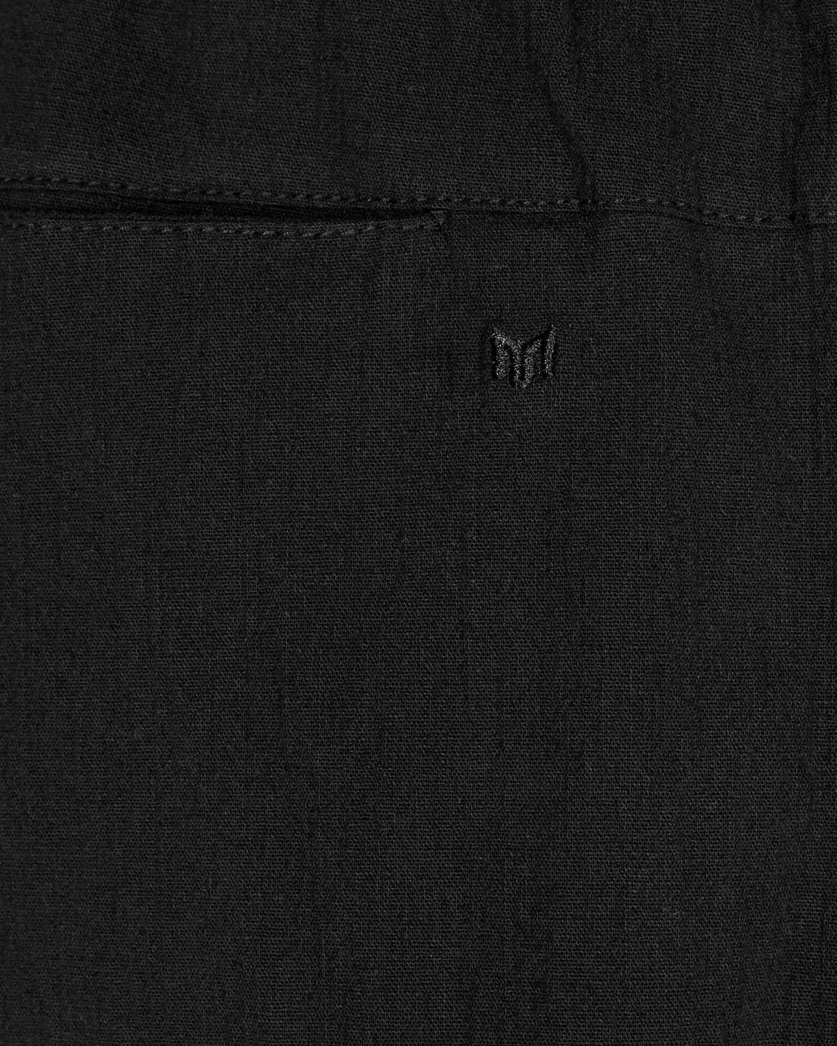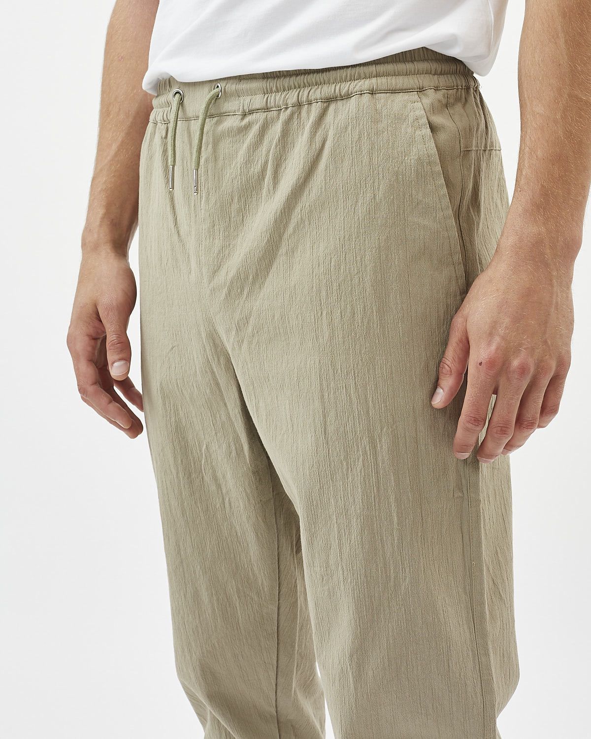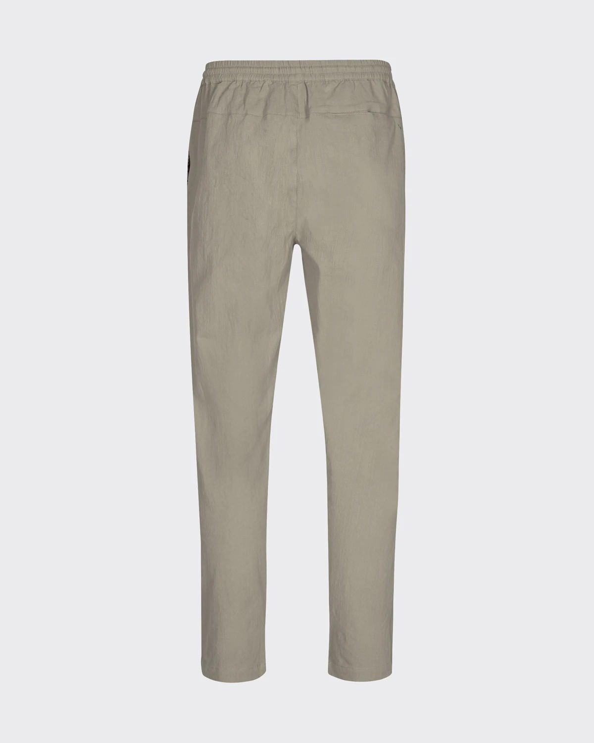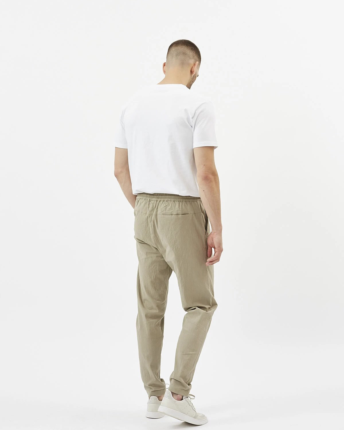 The pant has a regular fit and tapered legs and features elastic at the waist to ensure a perfect fit. It is designed with slanted pockets on the front and welt pockets on the back.